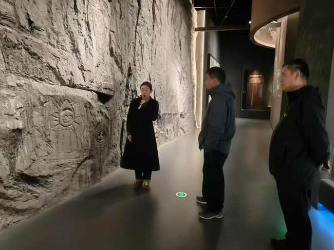 在博物院展廳內(nèi),黨員們循著“黃河從草原上流過——鄂爾多斯歷史文化陳列”的脈絡(luò)沉浸式參觀。從“河套人頭蓋骨”見證的遠(yuǎn)古文明,到“朱開溝中華第一銅劍”承載的早期冶金技術(shù),從“鄂爾多斯青銅器”展現(xiàn)的草原絲路風(fēng)采,到VR技術(shù)復(fù)原的秦直道盛景,文物與科技的融合讓大家直觀感受了黃河文化、草原文化與農(nóng)耕文化在鄂爾多斯的碰撞交融 。在“桌子山太陽神巖畫”等文物前,黨員們駐足細(xì)品,深入了解鄂爾多斯地區(qū)在多民族交往交流交融中的重要?dú)v史地位,進(jìn)一步堅定了文化自信。